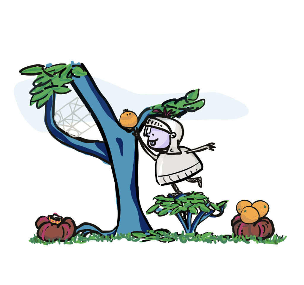 Sir Helpalot is een nieuwsgierige schilder met een gekke helm en een kwast.